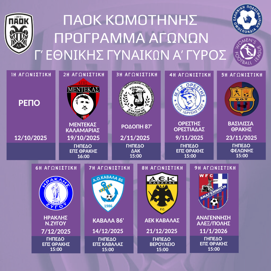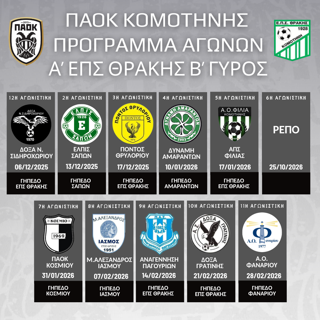 NEXT MATCH: ΠΑΟΚ ΚΟΜΟΤΗΝΗΣ Β’-ΦΙΛΑΘΛΗΤΙΚΟΣ