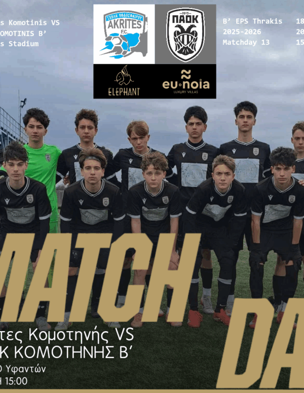 MATCHDAY 13: Ακρίτες Κομοτηνής – ΠΑΟΚ Κομοτηνής Β’