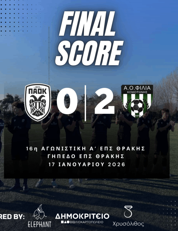 16η αγωνιστική Α’ ΕΠΣ Θράκης: ΠΑΟΚ Κομοτηνής – ΑΠΣ Φιλία 0-2