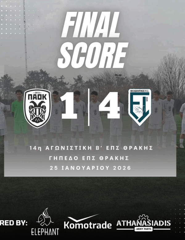 14η αγωνιστική Β’ ΕΠΣ Θράκης: ΠΑΟΚ Κομοτηνής Β’ – Φιλαθλητικός 1-4
