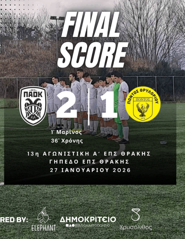 13η αγωνιστικής Α’ ΕΠΣ Θράκης: ΠΑΟΚ Κομοτηνής – Πόντος Θρυλορίου 2-1