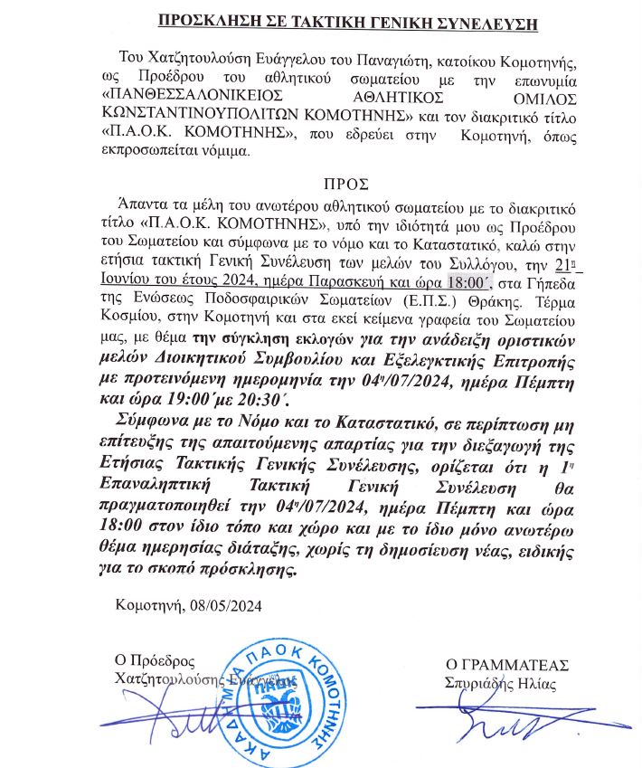PAOK FC Komotini > Γενικές Συνελεύσεις