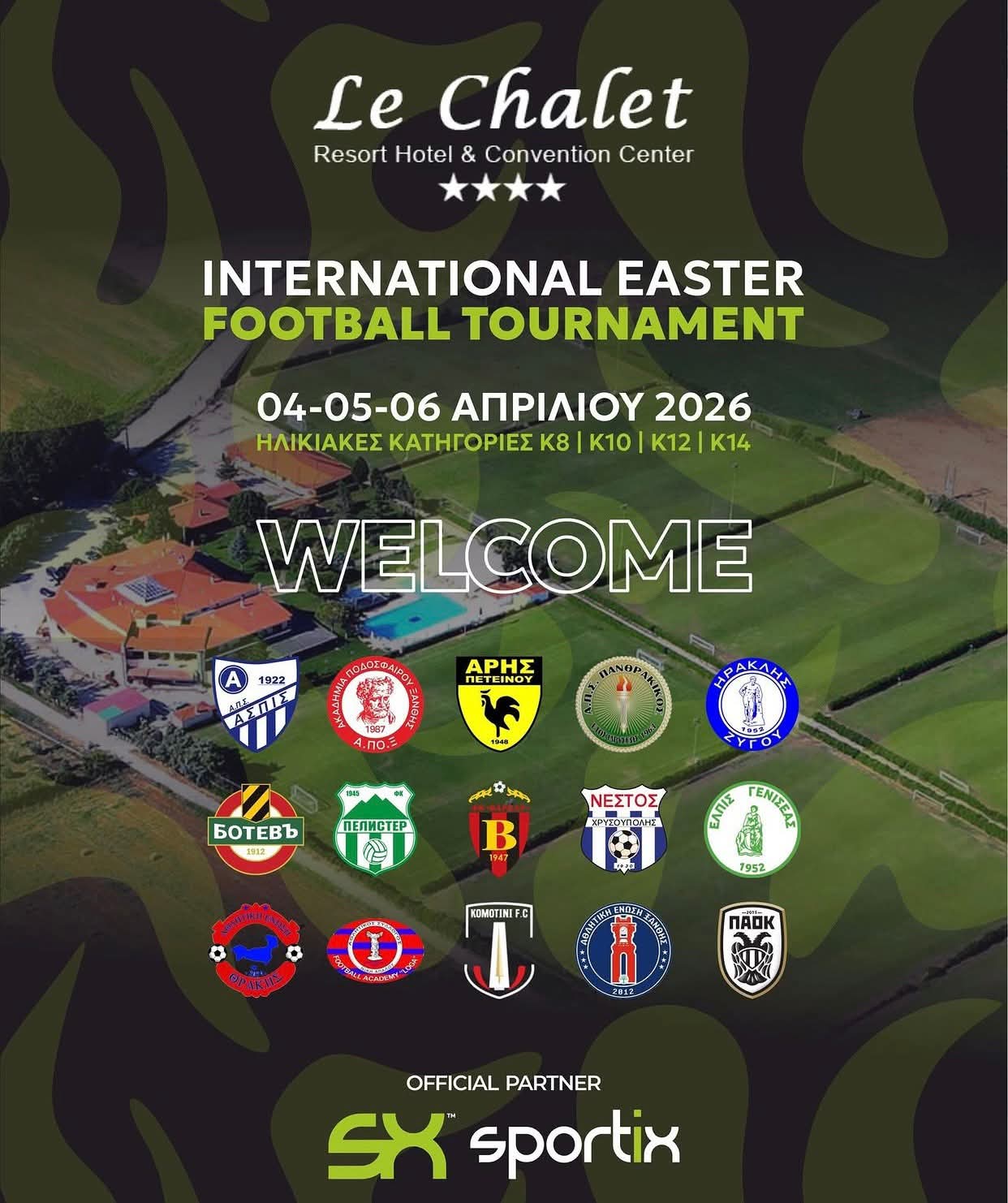 Η ακαδημία μας θα συμμετάσχει στο International Easter Football Tournament, ένα διεθνές τουρνουά ποδοσφαίρου που θα πραγματοποιηθεί στο Le Chalet Resort της Ξάνθης, φιλοξενώντας ομάδες και ακαδημίες από την περιοχή της Θράκης και το εξωτερικό. Το τουρνουά θα διεξαχθεί 4-6 Απριλίου και θα συμμετάσχουν τα τμήματα Κ8 Lyon, K10 Real, K12 Milan και K14 Dortmund…